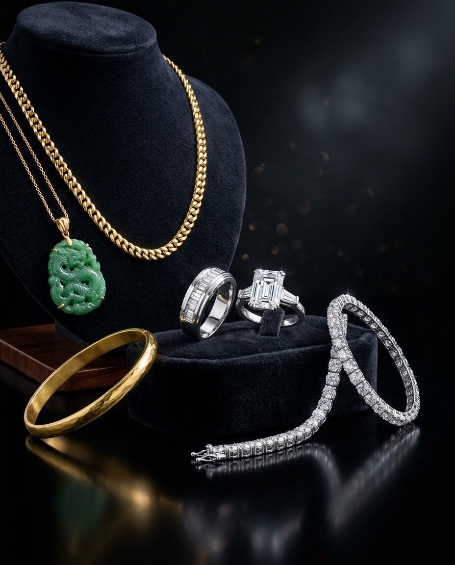 Celebrate tradition and modern elegance with our jade collection. Each piece is carefully sourced for its deep green hues and set in fine gold or platinum. From pendants to bracelets, jade jewelry symbolizes longevity, prosperity, and timeless beauty. Blending cultural heritage with contemporary luxury, our jade pieces make a bold yet refined statement.