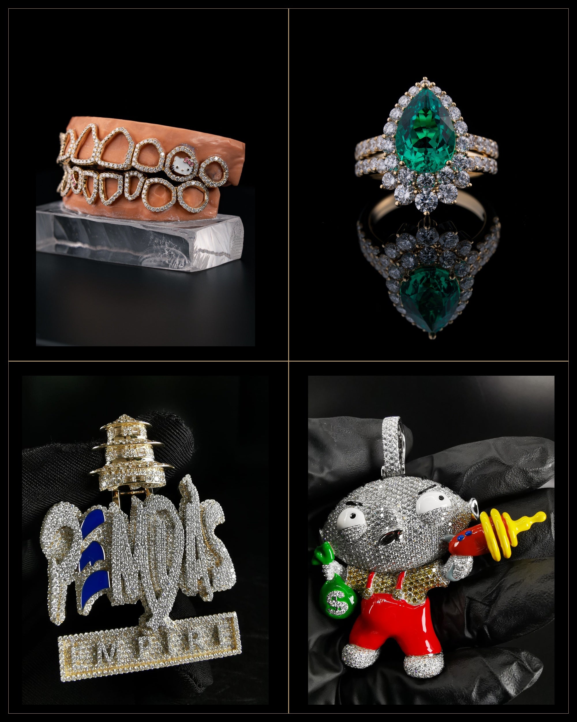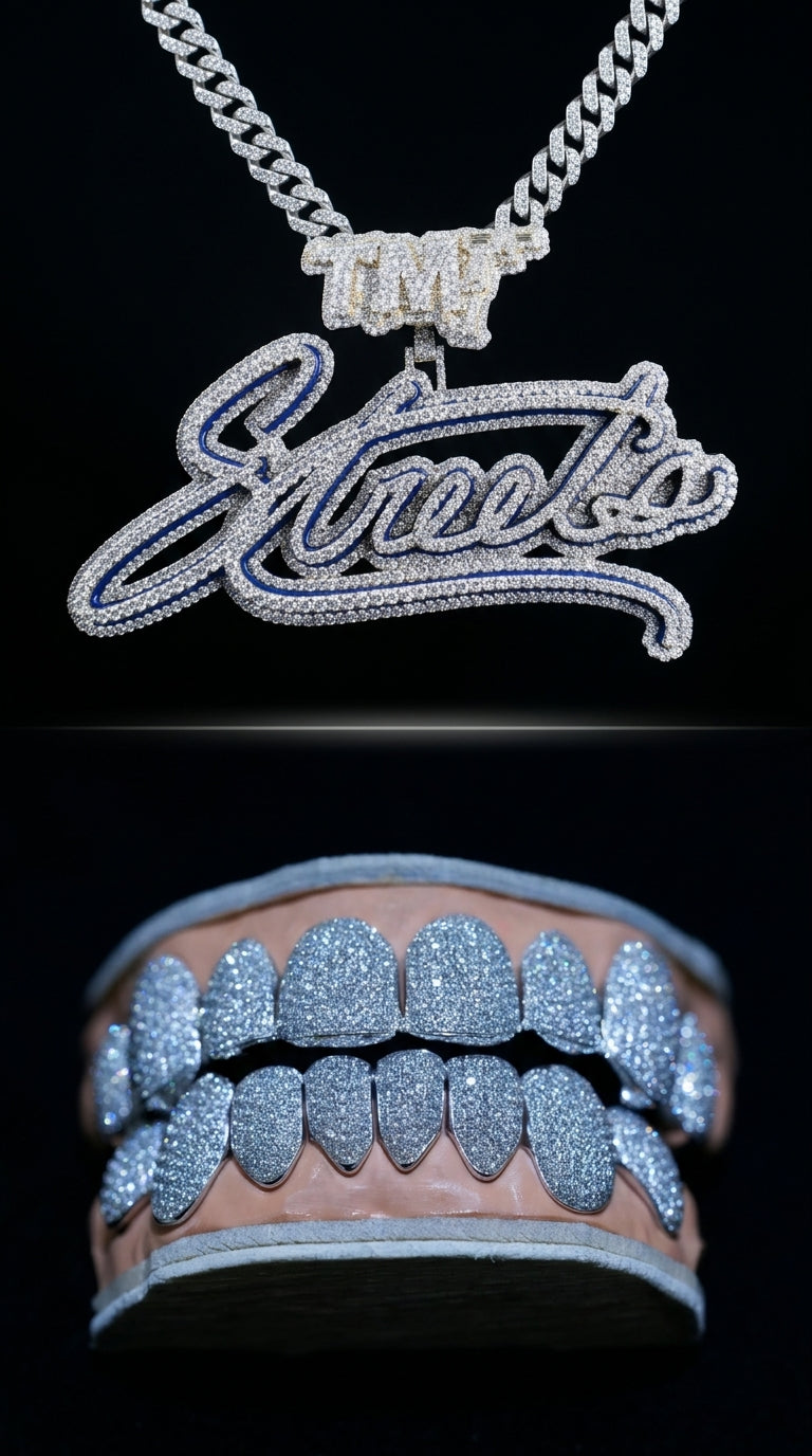Discover our curated collection of diamond pendants and statement pieces crafted in gold, platinum, and precious stones. From custom initials to fully iced-out designs, each pendant is designed to elevate your style and express individuality. Whether layered with a chain or worn as a solo centerpiece, our pendants combine timeless craftsmanship with bold, modern luxury. Explore religious icons, custom motifs, and limited-edition exclusives—all hand-selected for brilliance, clarity, and flawless finishing.