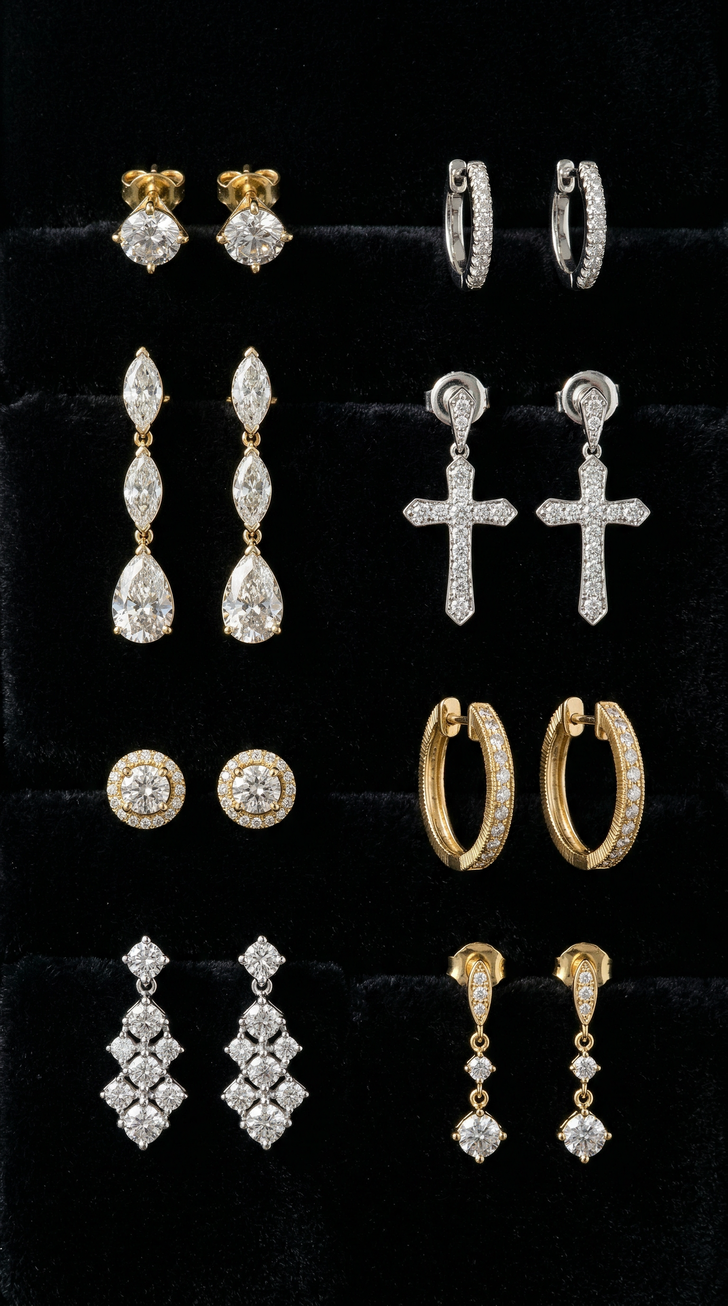 Elevate your look with our luxury earring collection featuring diamond studs, hoops, clusters, and drop styles. Each piece is expertly cut to maximize brilliance and handcrafted in gold or platinum settings. Designed for both men and women, our earrings range from subtle everyday classics to bold, iced-out statements. Perfect as gifts or personal staples, they embody timeless design with a modern edge.